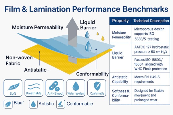 - The Solution: We utilize designated high-density microporous composite structures that pass ASTM F1671 (viral penetration test), ensuring that medical professionals remain dry and protected from blood-borne pathogens during long procedures.