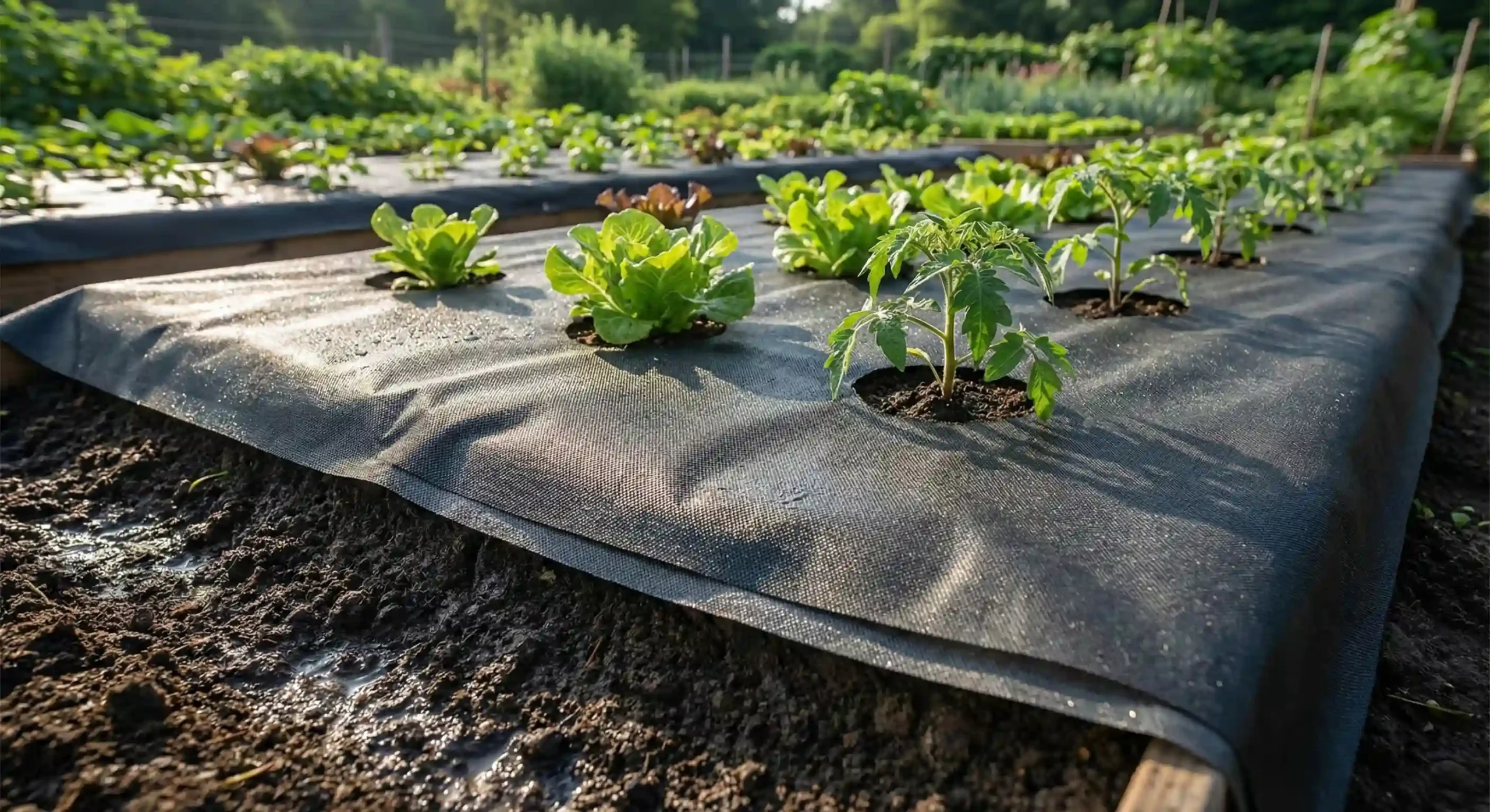 This sustainable fabric acts as a natural barrier against weeds, reduces evaporation, and promotes more stable soil temperature throughout the growing season.