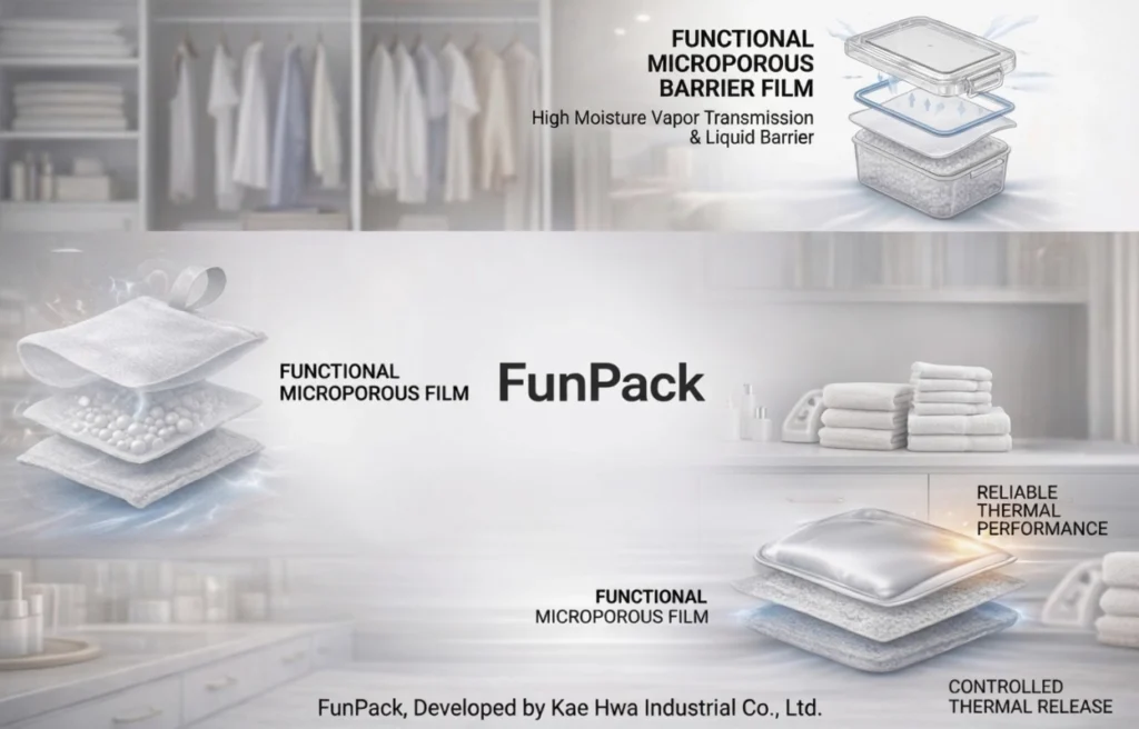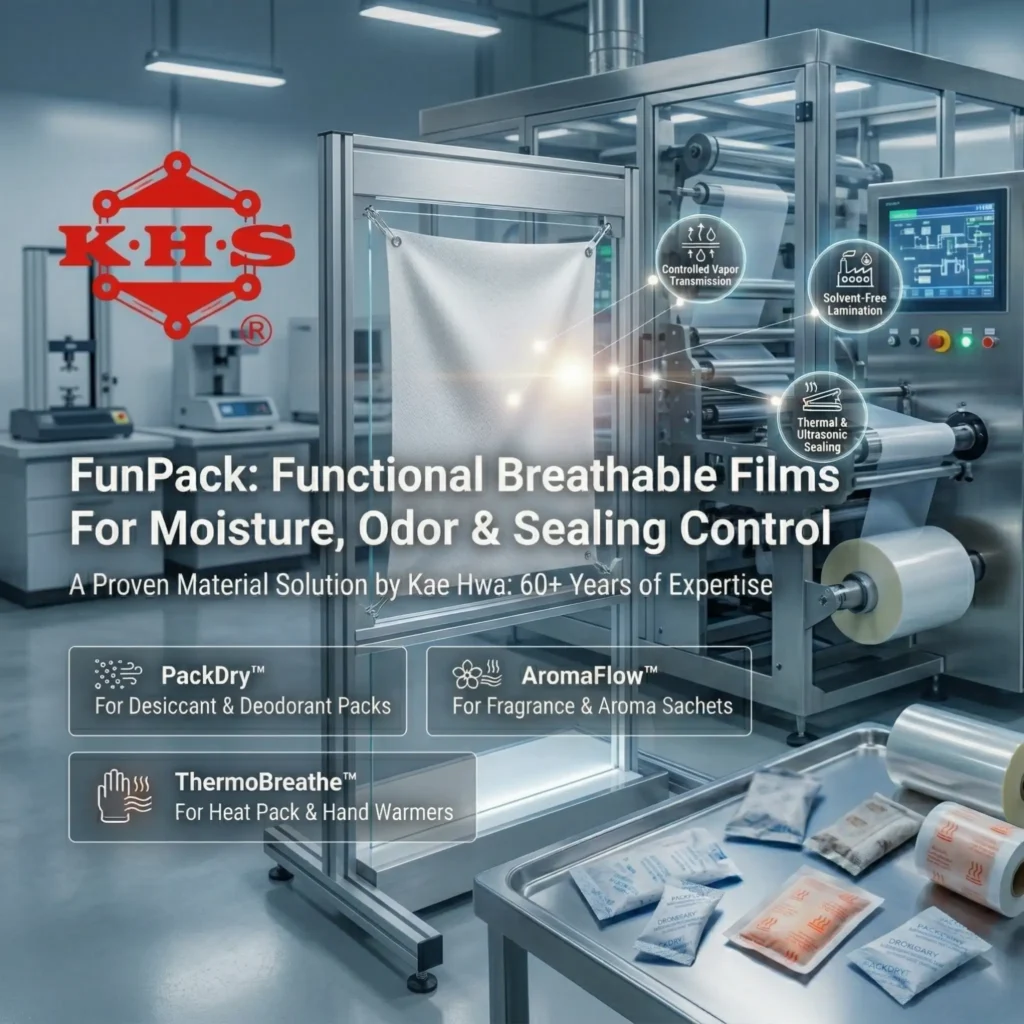 Kae Hwa’s AromaFlow™, part of the FunPack series, is a highly engineered breathable film laminate designed specifically for premium fragrance pouches, scented beads, and essential oil sachets. By providing a precise Moisture Vapor Transmission Rate (MVTR), AromaFlow™ ensures a steady, long-lasting release of aromas while completely blocking liquid oils and preventing chemical seepage, making it the perfect packaging solution for the home and car fragrance industry.