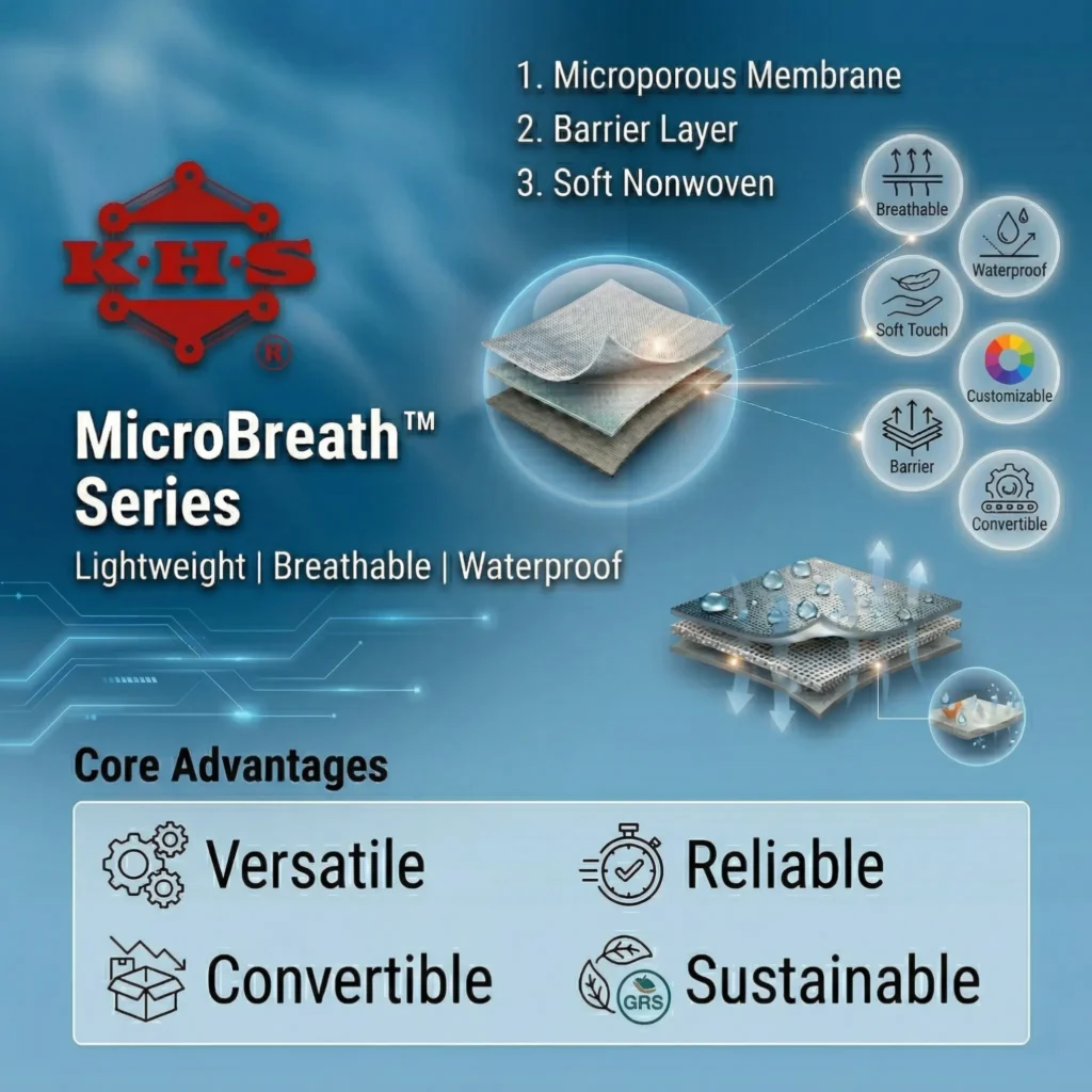 MicroBreath PP by Kae Hwa Industrial is a high-strength polypropylene breathable film engineered for industrial, agricultural, and protective applications. Offering superior tensile strength, thermal resistance, and chemical durability, it delivers stable microporous breathability and long-lasting waterproof protection.